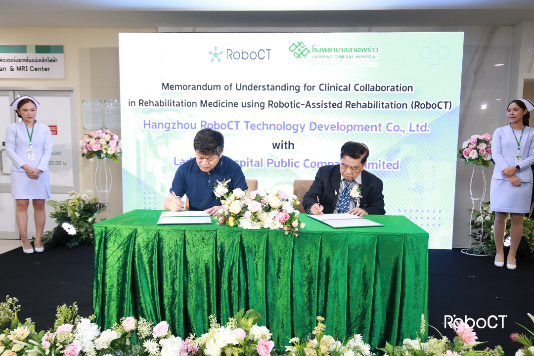 3月6日,恰逢泰国拉普劳综合医院成立33周年,程天科技与泰国拉普劳综合医院(ladprao general hospital)签署战略合作备忘录,并正式为拉普劳机器人康复中心揭牌。